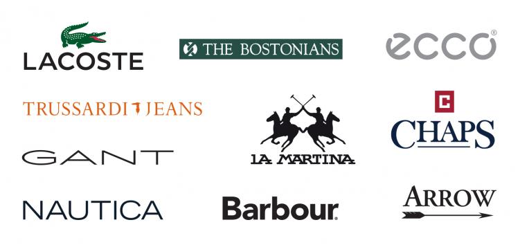 Στο Notos Outlet σας περιμένει μια μεγάλη ποικιλία συλλογών σε ρούχα από τις εξής μάρκες: Barbour, Denim & Supply by Ralph Lauren, Gant, Lacoste, Trussardi Jeans, Nautica, La Martina, The Bostonians, Arrow, Kookai, Chaps, Polo Jeans, Ecco, Esprit.